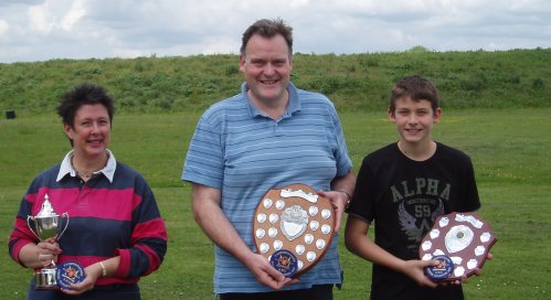 Cambridgeshire Individual ABT Championship – Nuthampstead Shooting Ground – 20th May 2007 In marked contrast to the UT, the weather at Nuthampstead was pretty much perfect for the ABT championship. Fve Cambridgeshire shooters shot in the 80s, but all except one of them had a layout scoring in the teens that let them down. The exception was Pete Waller who took the title on 89 - coincidentally the same score that won the title in both 2006 and 2005 (although not for Pete on those occasions). Well done Pete! As if one ABT title on the mantelpiece wasn't enough, George Waller also took the Junior title with 73. Jane Bell retained her Ladies' title with 76, while the perennial hard-fought Veteran's title was re-taken by Gordon Tate. Congratulations and commiserations to Nick Evans who has now been 2nd in the ABT for three years in a row.