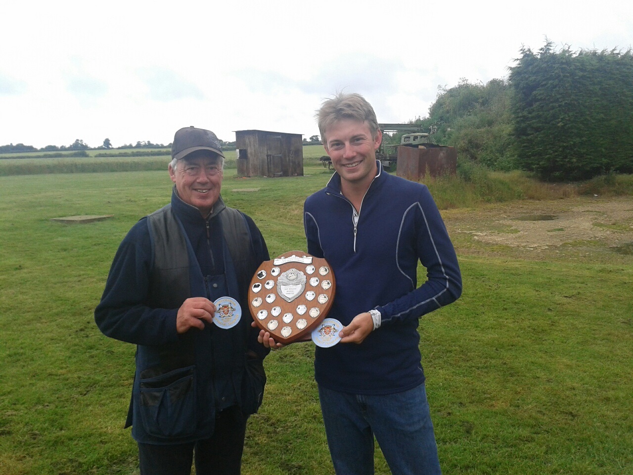 The Cambridgeshire Olympic Skeet was held at Tythe Farm on Saturday 28th June. As a discipline, OSK has never been easy, and changes over recent years to increase the speed of targets and number of doubles shot at have only added to the challenge. Nevertheless six Cambridgeshire shooters braved the targets and the weather – the rain was so hard at one point that non-shooting squad members were all under umbrellas and the referee was indicating hit/miss to by semaphore to the scorer sheltering in the barn. One the shooters had assembled though, the real fight was for second place, as the County Champion title went to Cambridgeshire’s representative in the Team GB OSK squad, Freddie Killander, who dominated not only with an 89 but a final round of 25ex25. Phil Smith and Graham Carter tied on 64 in second place, with Phil taking the Vets’ title.